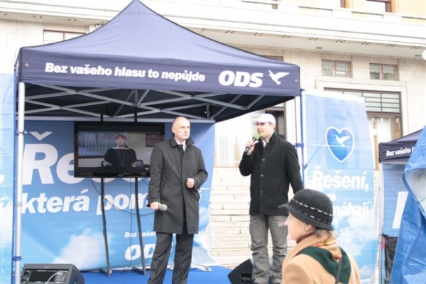 Moderátor kandidáty představil a neopoměl zdůraznit důležitost květnových voleb a potřebu volit pravici, tedy ODS.