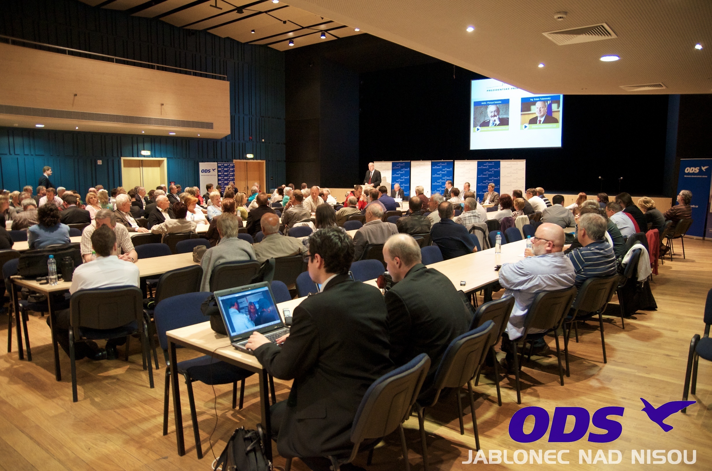 Dva bývalí volejbalisté, Přemysl Sobotka a Evžen Tošenovský, bojují o nominaci na prezidenta v primárkách Občanské demokratické strany. Konají se v každém kraji, právo volit má každý člen ODS. Ve čtvrtek se nominační kolona zastavila v Jablonci, v domovském regionu Přemysla Sobotky, který je ze sousedního Liberce. Dostavil se též předseda ODS i vlády Petr Nečas. I na tomto fóru se mluvilo o Davidu Rathovi.