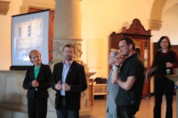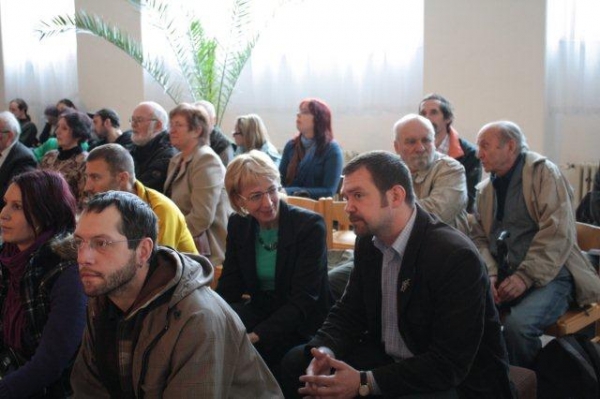 Redaktor Jan Žíla vyzpovídal autora publikace. Pak následoval slavnostní křest, kterého se ujala náměstkyně ministerstva školství Eva Bartoňová.