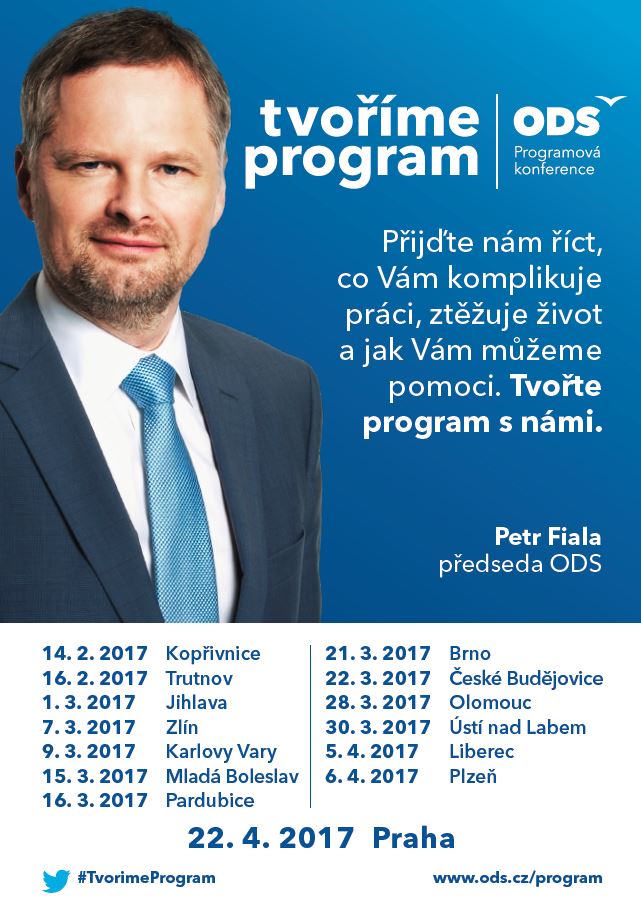 Termíny a místa jednotlivých diskusí a stránku pro zaslání podnětů do volebního programu naleznete na www.tvorimeprogram.cz.